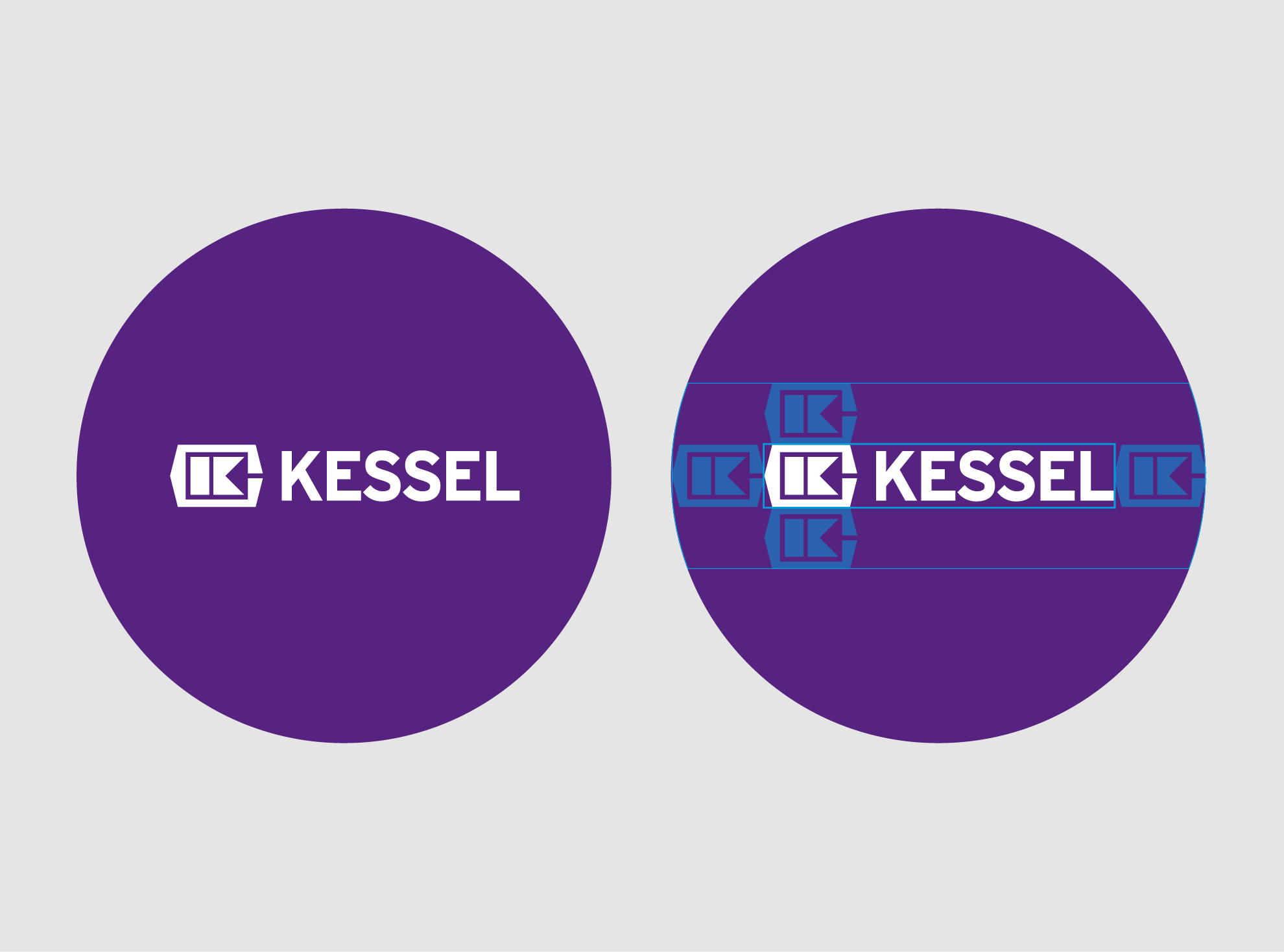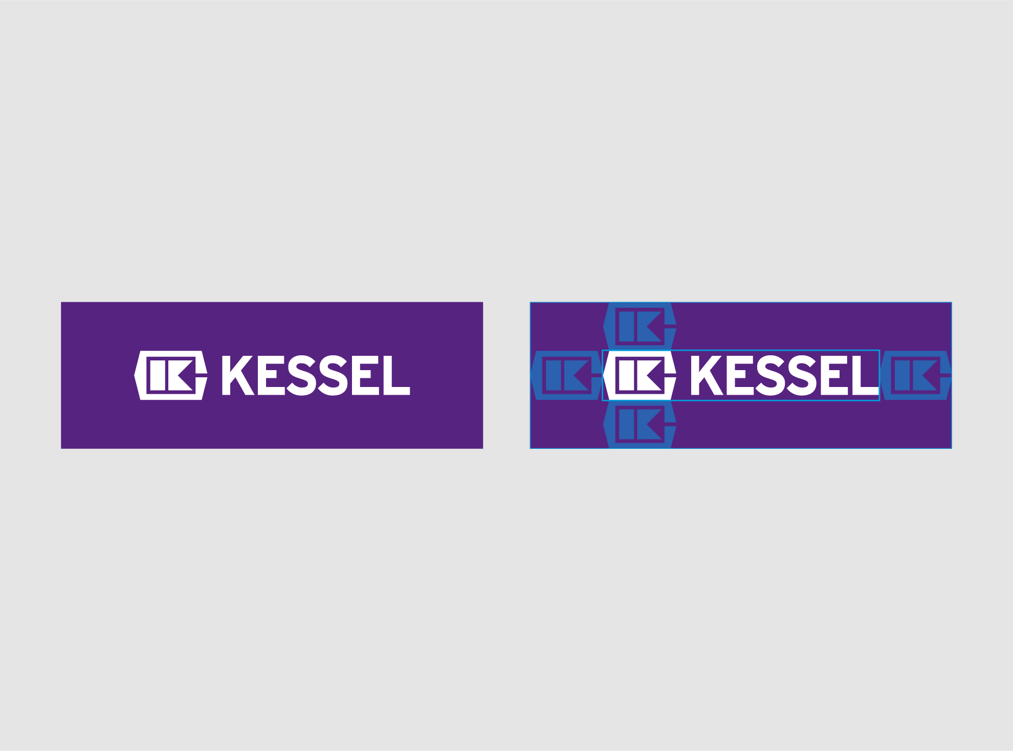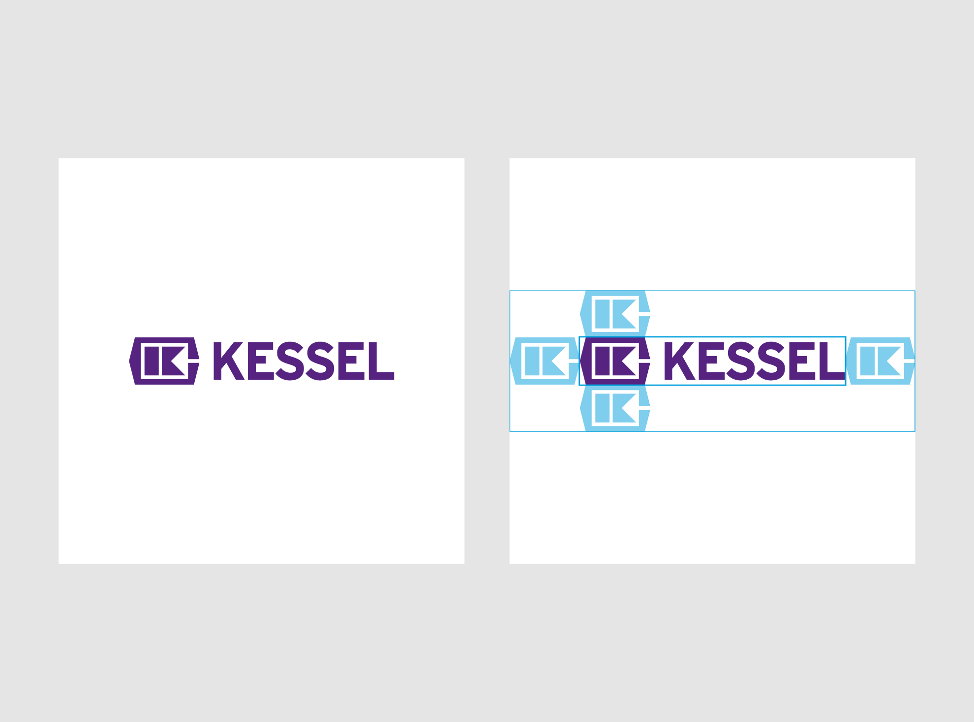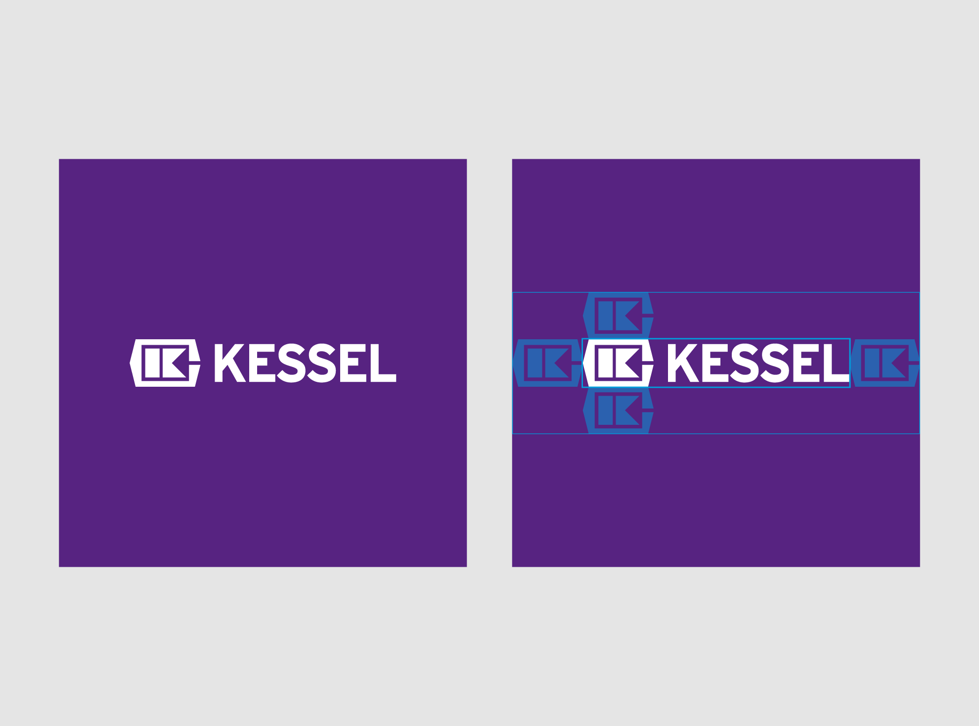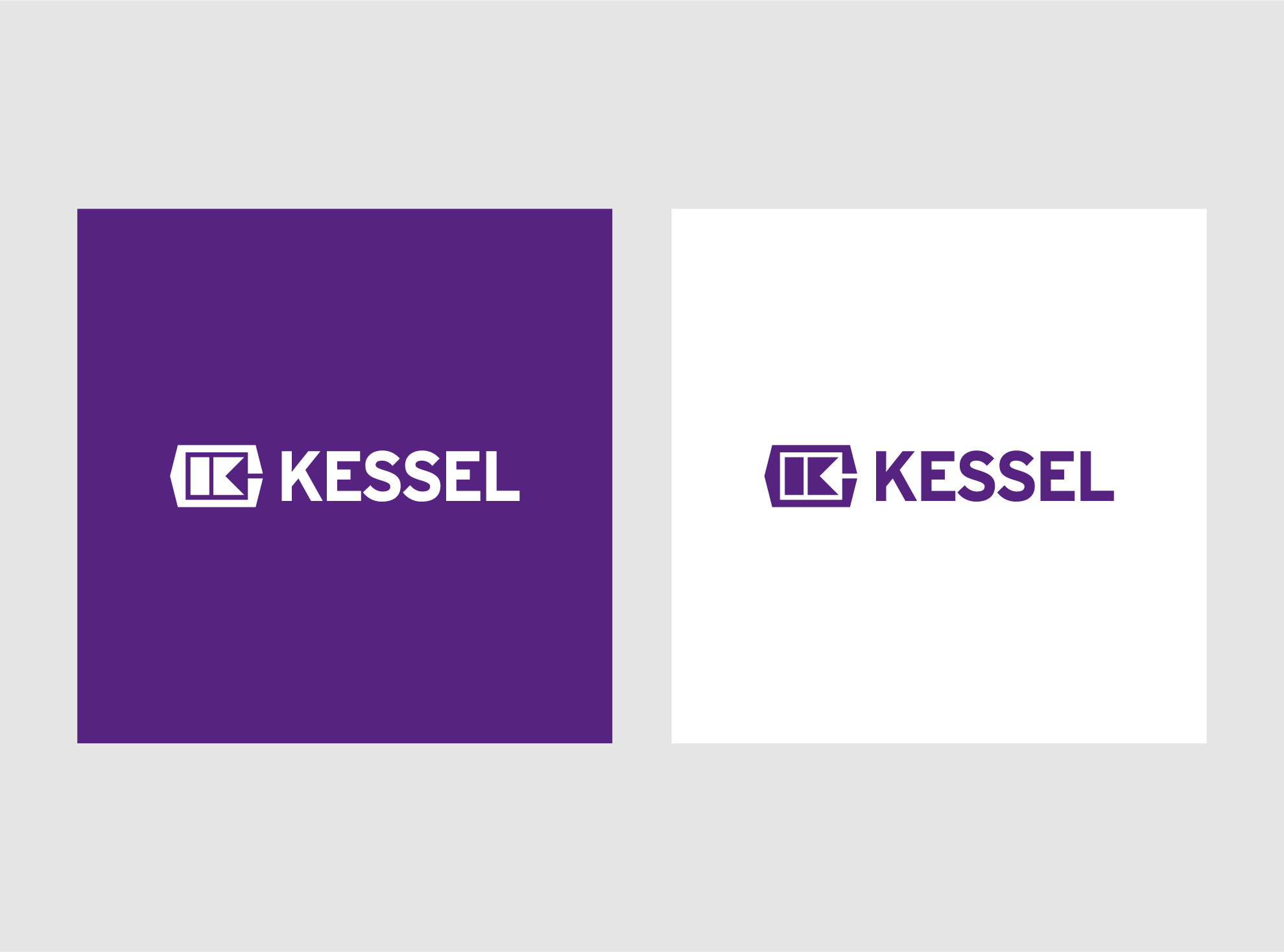 Das KESSEL-Logo wird stets in der festen Kombination aus Wort- und Bildmarke verwendet. Je nach Anwendung wird es entweder in Violett auf Weiß oder Weiß auf Violett genutzt.