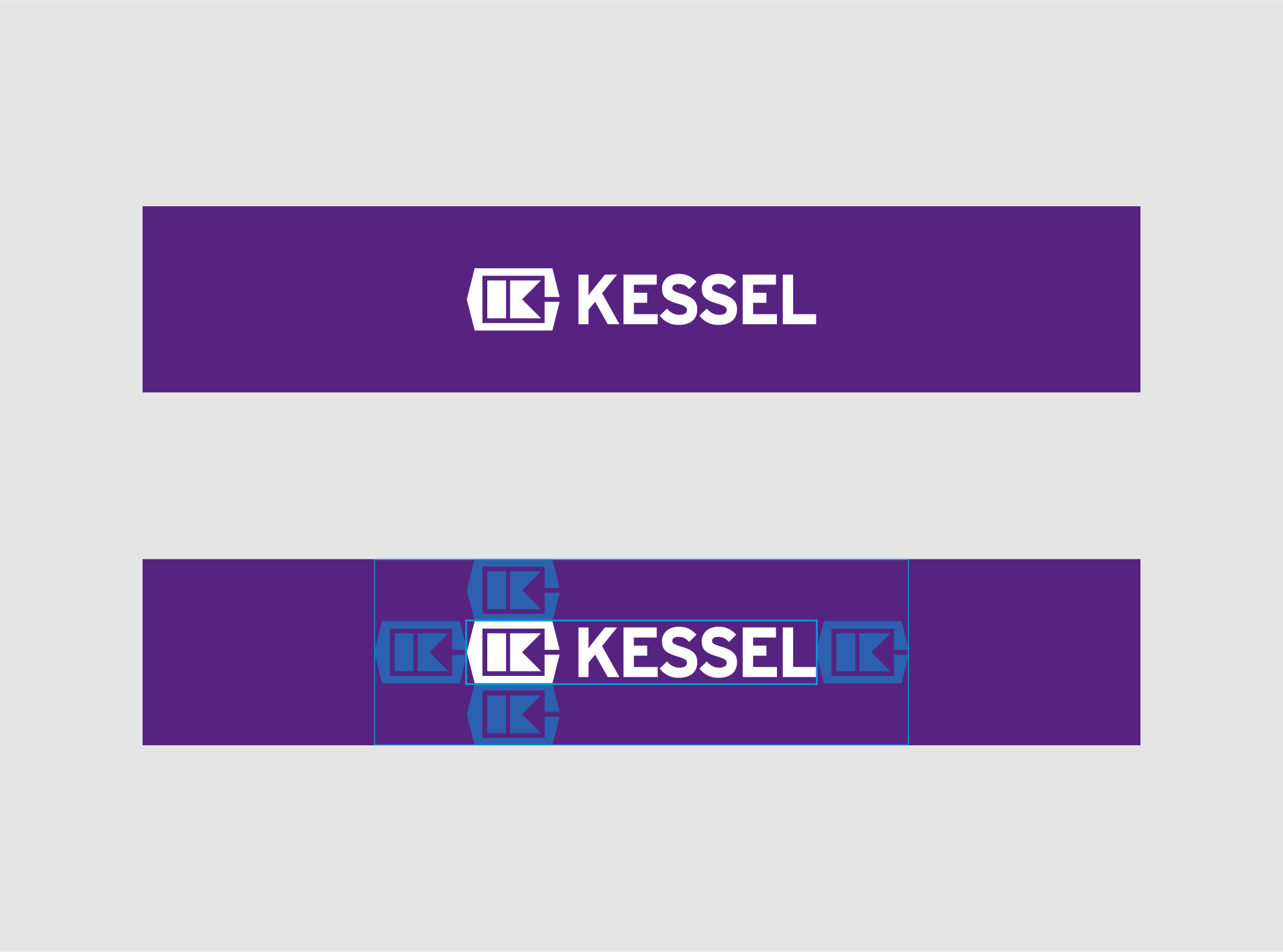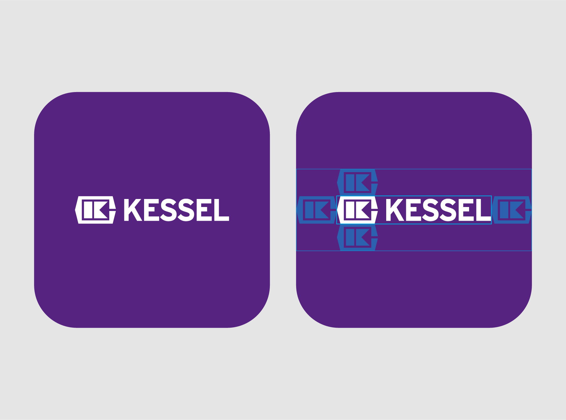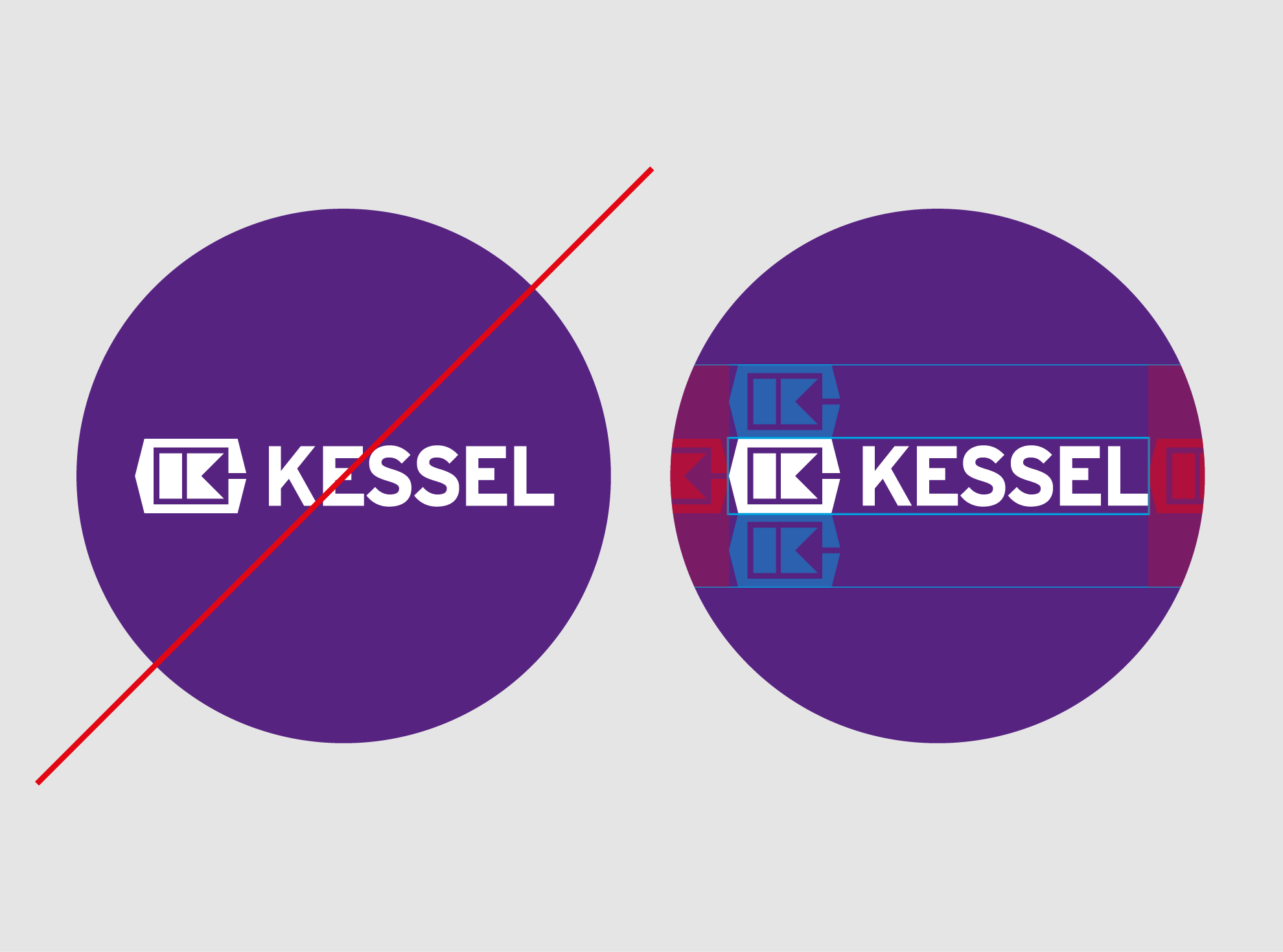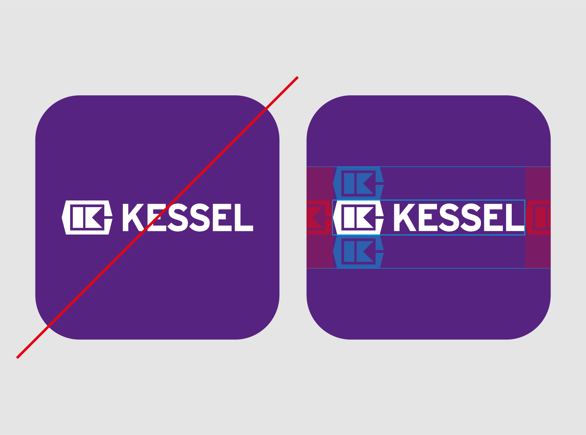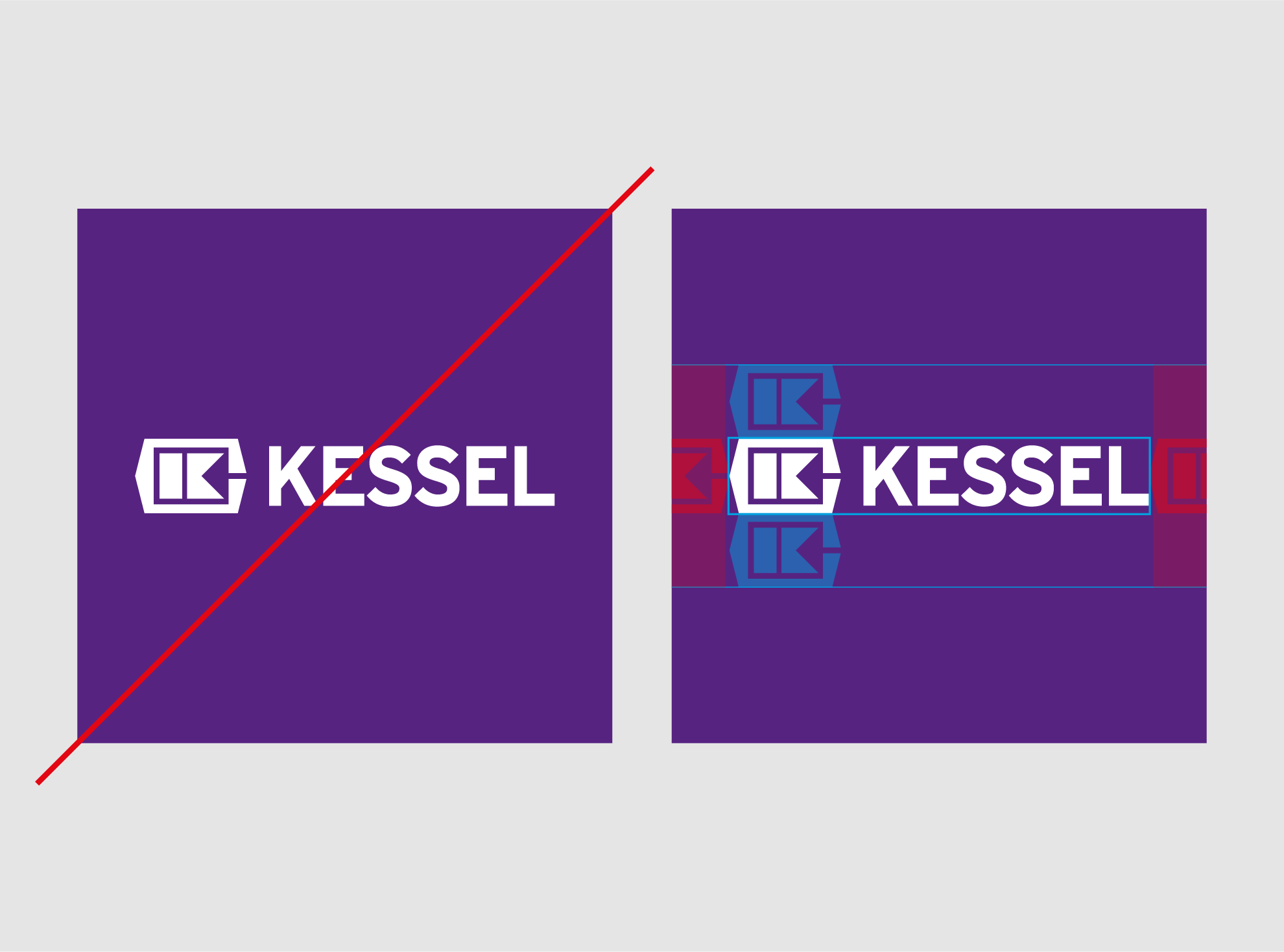 Das KESSEL-Logo wird stets in der festen Kombination aus Wort- und Bildmarke verwendet. Je nach Anwendung wird es entweder in Violett auf Weiß oder Weiß auf Violett genutzt.