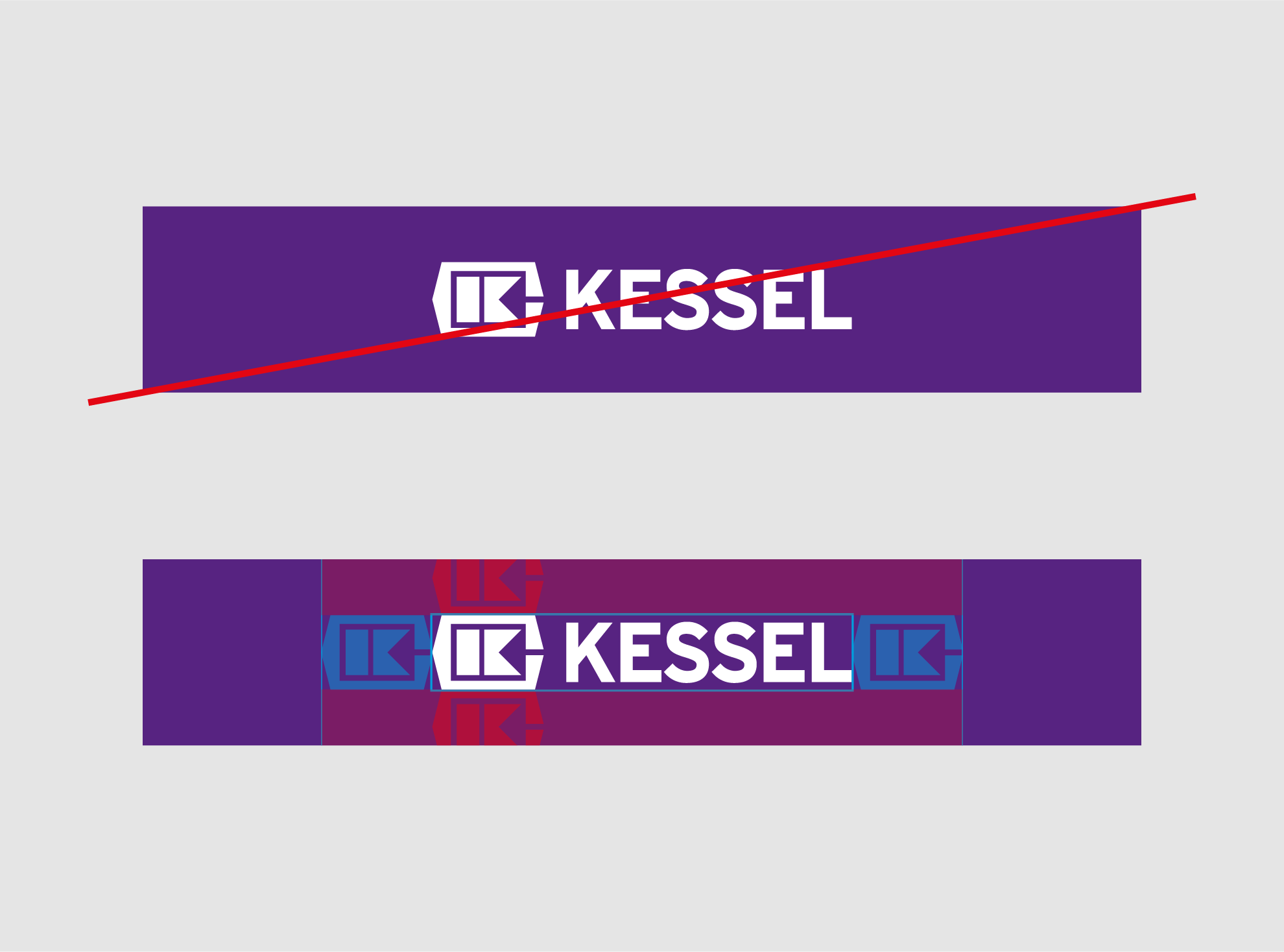 Im Regelfall darf ausschließlich das KESSEL-Logo als Branding-Element verwendet werden. Für besonders wichtige und eigenständige Themen – keine Abteilungen – können jedoch Submarken-Logos (wie das gezeigte) zulässig sein. Die Entscheidung hierüber obliegt der Geschäftsführung und dem Marketing. Submarken-Logos werden immer gemeinsam mit, jedoch räumlich getrennt vom Hauptlogo verwendet.