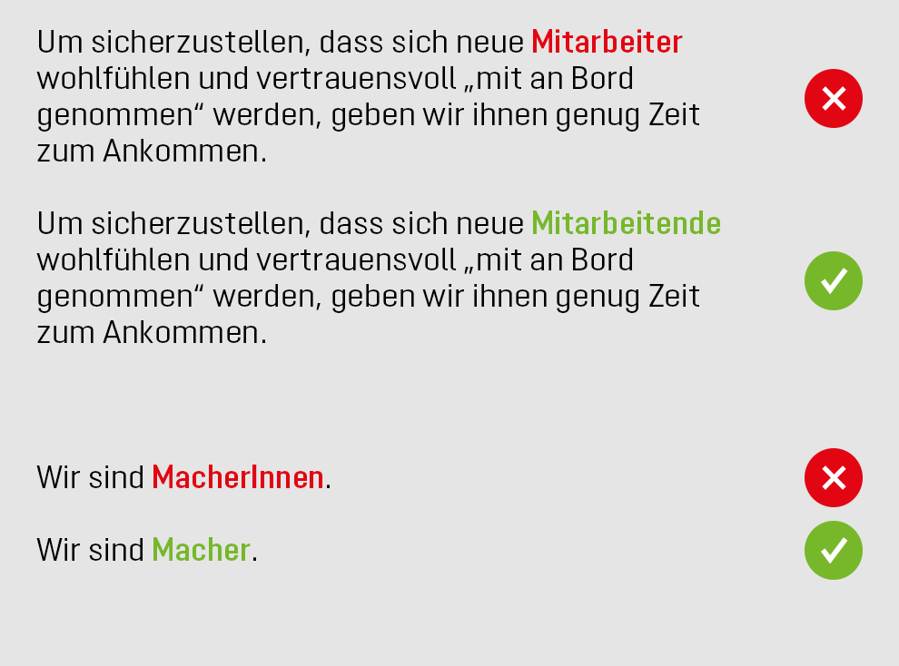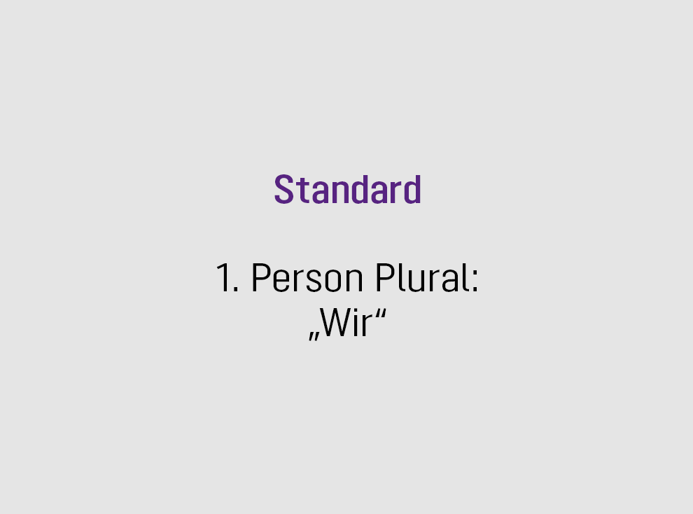 Mit konsistenten Texten verleihen wir unseren Werten Substanz. Hierfür bedienen wir uns einer einheitlichen Erzählerstimme in unseren schriftlichen Veröffentlichungen. Sie prägt den Markencharakter mittels bestimmter sprachliche Merkmale.