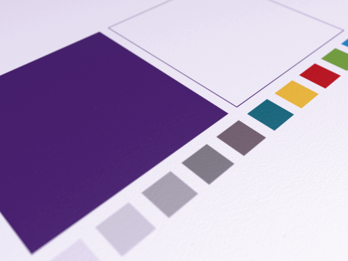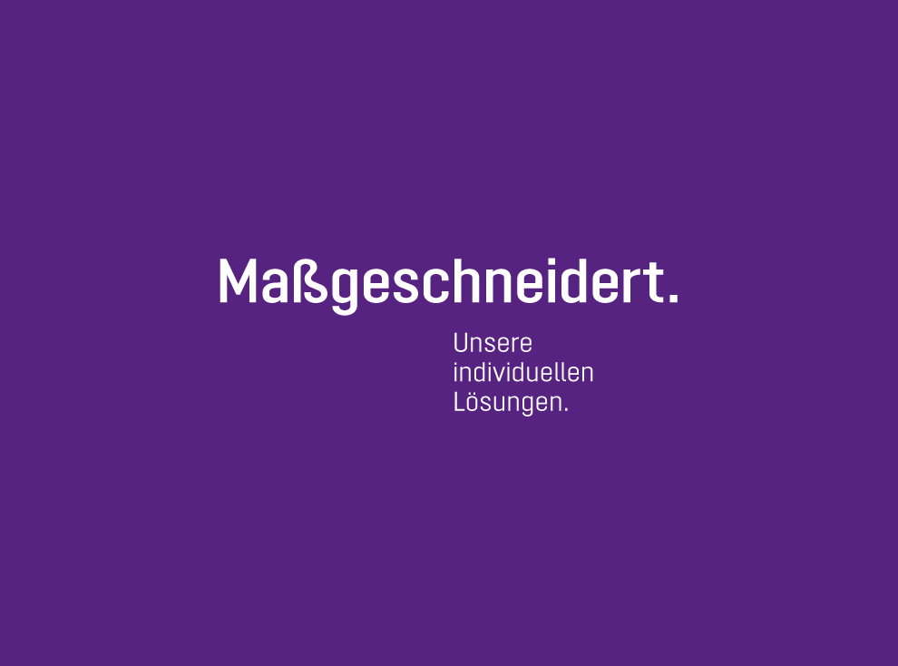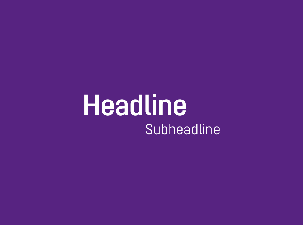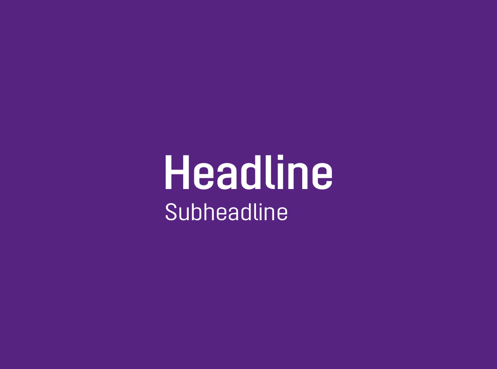 Headings are generally set in Semibold font and subheadings in Regular font. The font colour is always violet or white.
