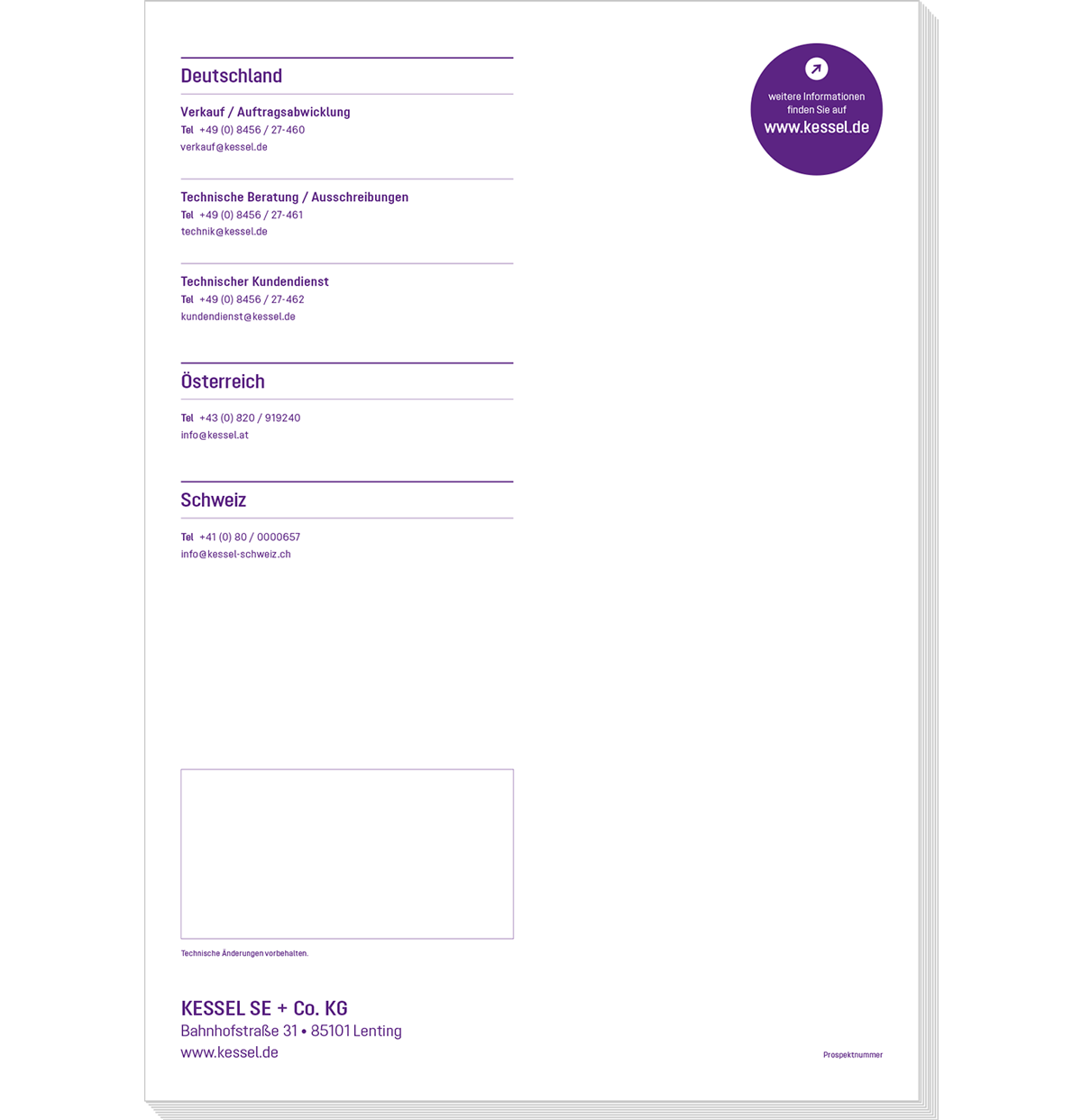 Brochures on individual topics or for special occasions can deviate from the standard having taken the basics of the KESSEL brand and the above-mentioned decisions into account.