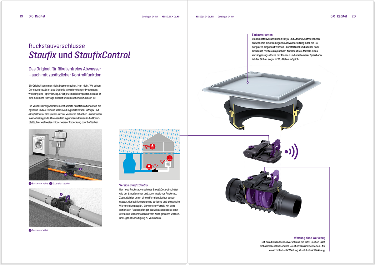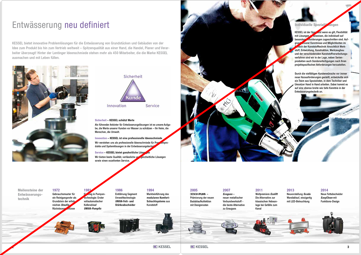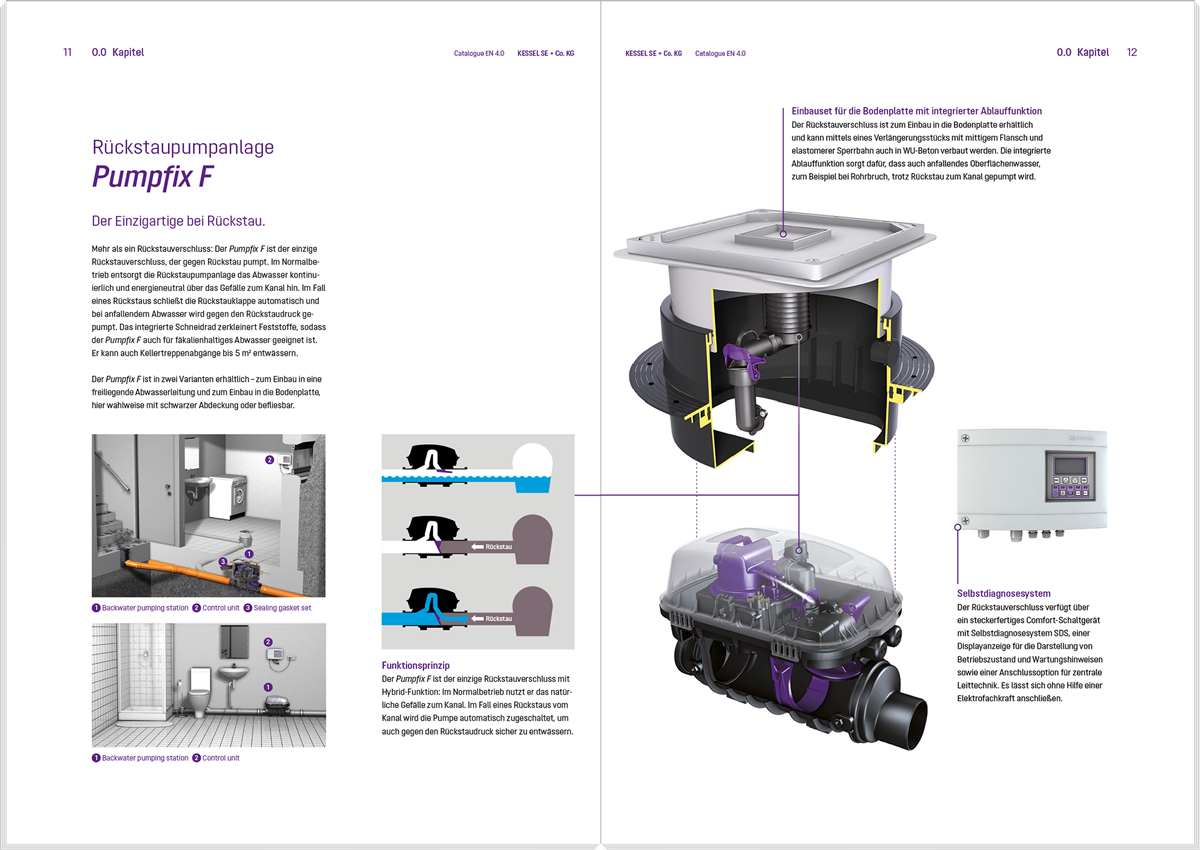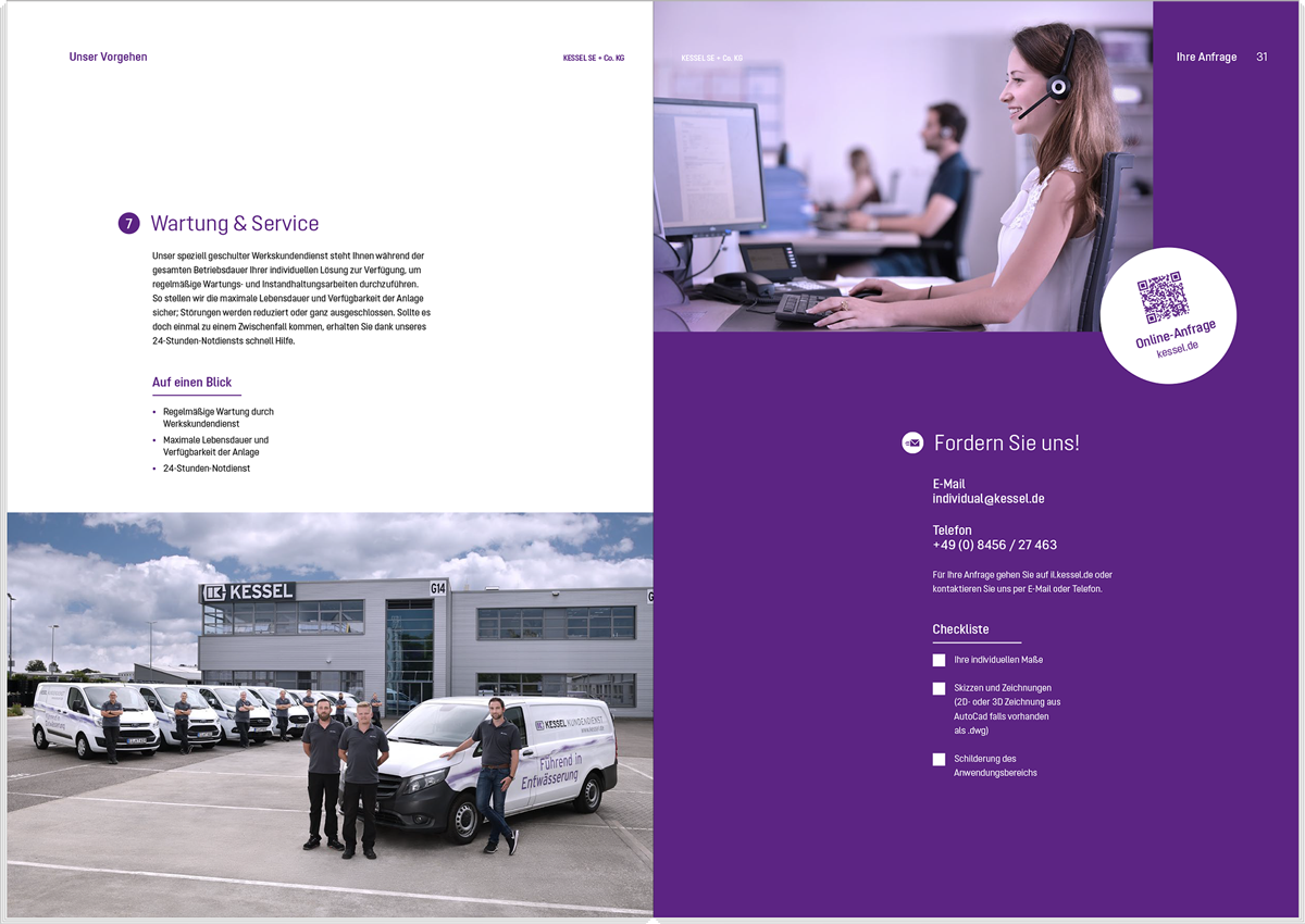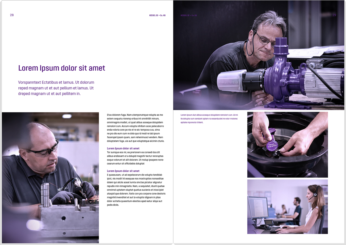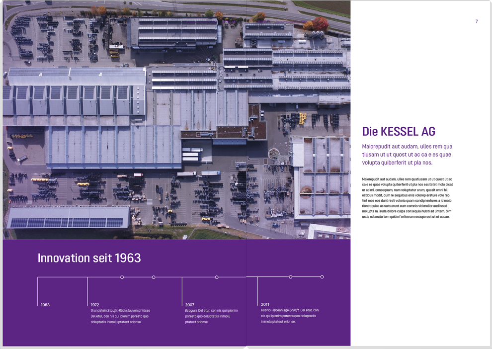 The following template files can be used as a basis for new brochures, but must not be considered as a binding obligation. The aim of every KESSEL publication is to consistently represent the KESSEL brand on the one hand and to communicate the specific content in an informative and eye-catching manner on the other hand. The latter requires individual freedom. For example, different margins, column layouts or font sizes are allowed.